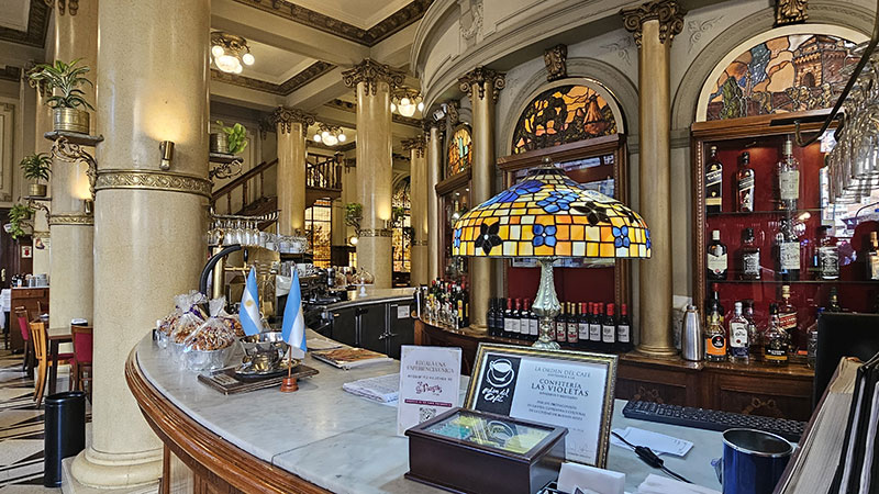 Al cruzar las puertas de Las Violetas, no solo ingresas a una confitería; te sumerges en una experiencia que evoca la opulencia y el encanto de una Buenos Aires de antaño.